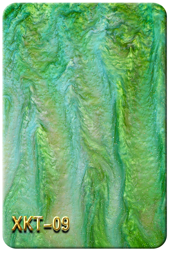 表面高亮光滑,絕無異物; 耐候性、耐溫性好,使用壽命長久,不會褪色失光; 加工后性能穩定,無異味;適合機械加工又易熱成型。 無毒、綠色環保,外觀優美,品種繁多、色彩鮮艷 層次分明